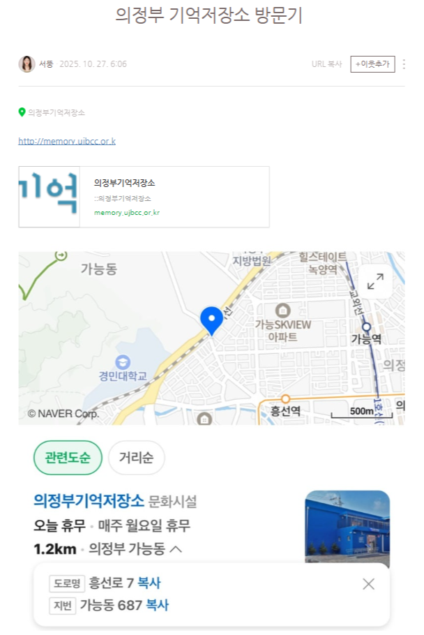 블로그 바로가기 → 의정부 기억저장소 방문기 : 네이버 블로그
