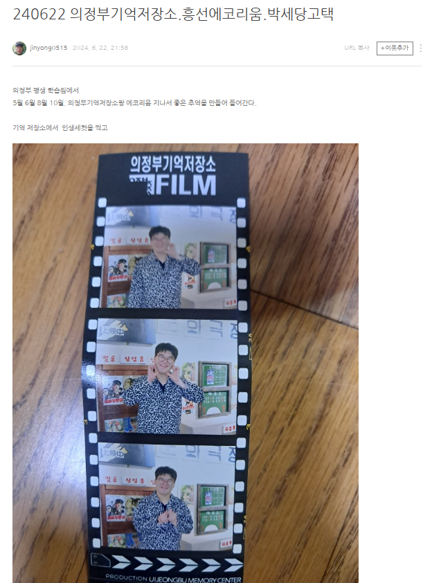 블로그 바로가기 → 의정부 학창시절 추억을 찾아 기억저장소를 다녀.. : 네이버블로그 (naver.com)